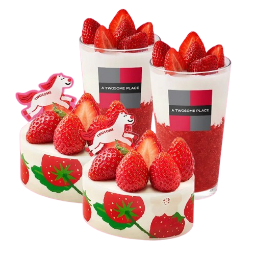 떠먹는 스초생 + 떠먹는 화이트 스초생 + 딸기 연유 라떼 R + 딸기 요거트 라떼 R