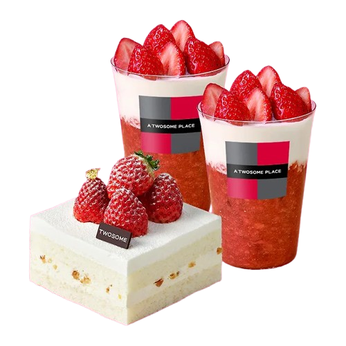 생딸기 듬뿍 우유 생크림 (쁘띠) + 제철 맞은 딸기 라떼 (R) + 생딸기 주스 로우 슈거 (R)